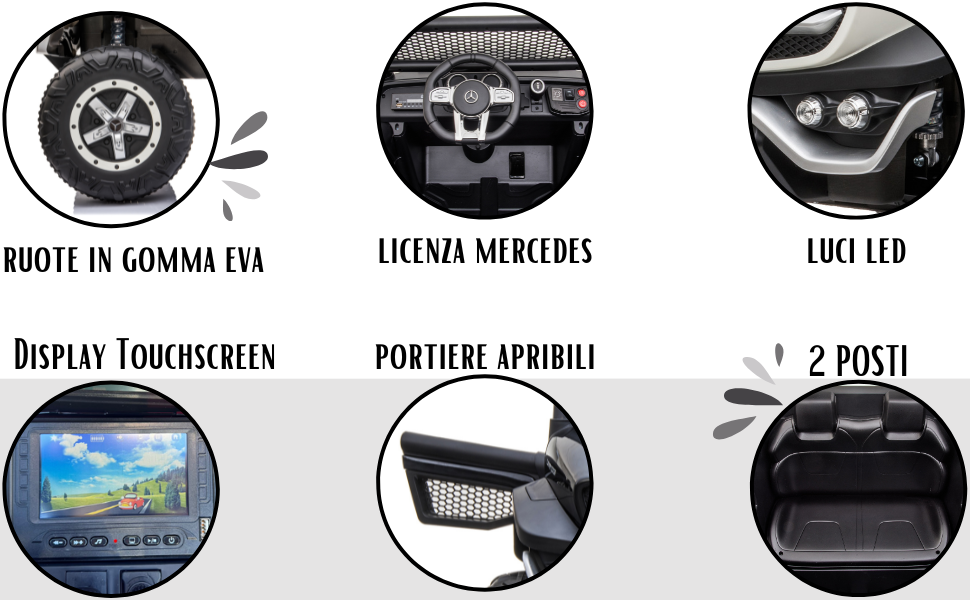 Auto Elettrica per Bambini Mercedes Unimog 12V 2 Posti Monitor Touchscreen Mp4-Nero