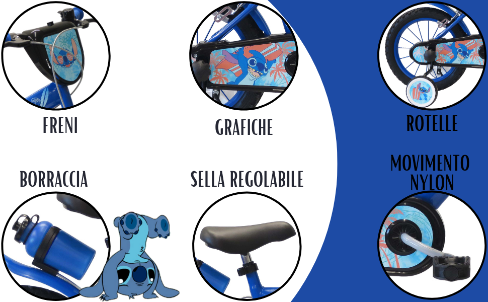 In dotazione la Borraccia, Campanello e le Rotelle Stabilizzatrici facilmente removibili.