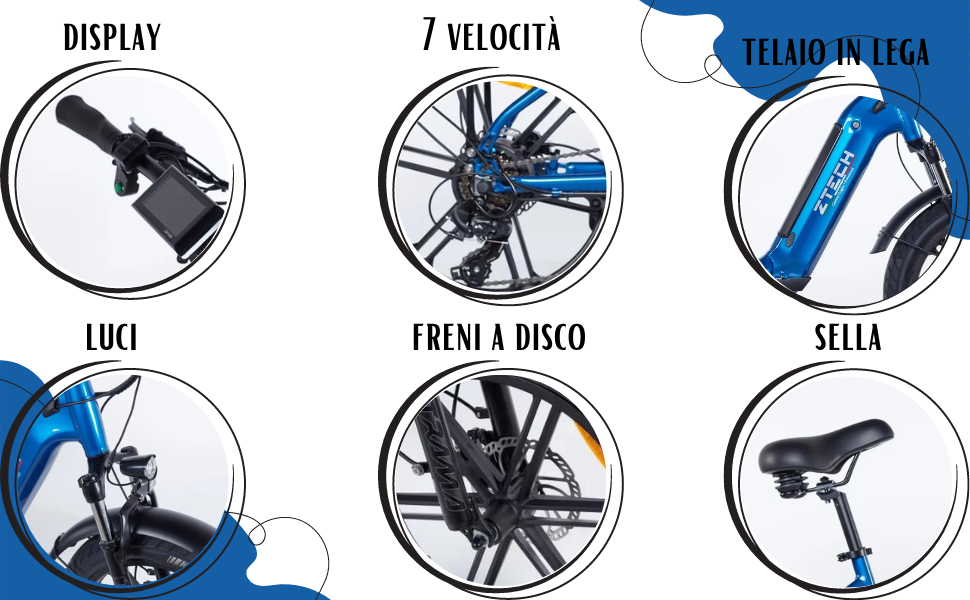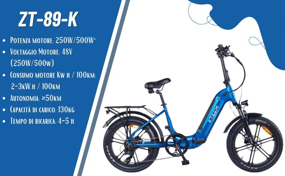 Bicicletta Elettrica Z-Tech ZT-89-K KRONOS 250/500W 48V13Ah Batteria Litio-Blu Metallizzato
