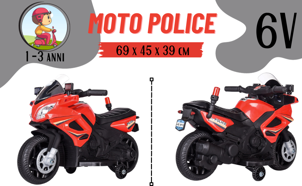 Moto Elettrica per Bambini Tecnobike Shop MOTO POLICE 6V-Rosso